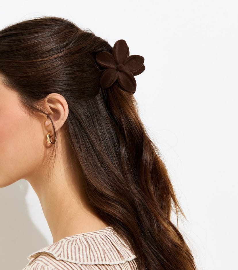 The New Look Brown Velour Tropical Flower Hair Claw Clip is made from velour.