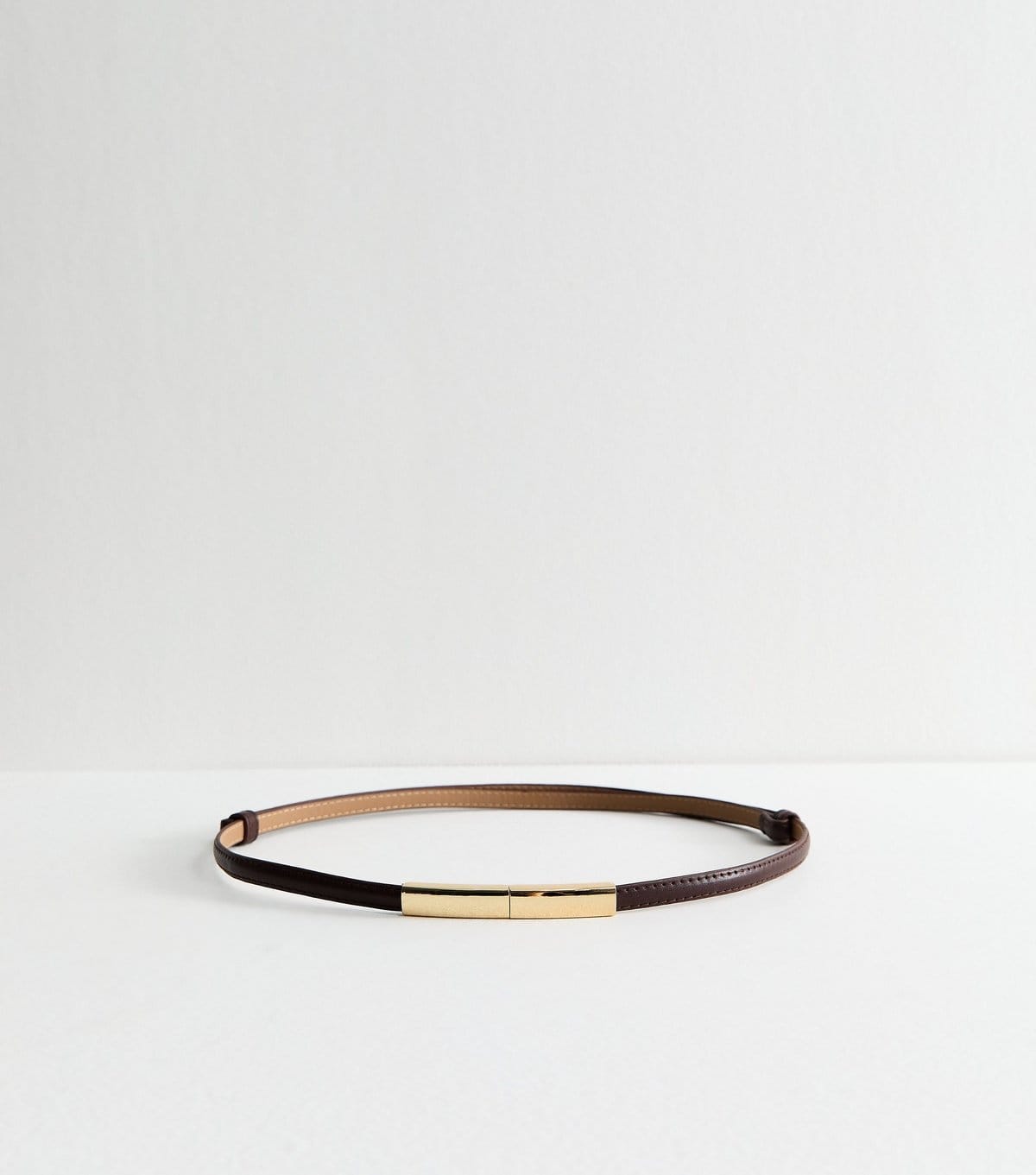 The New Look Dark Brown Faux Leather Skinny Belt is available in sizes M/L, S/M, XS/S.