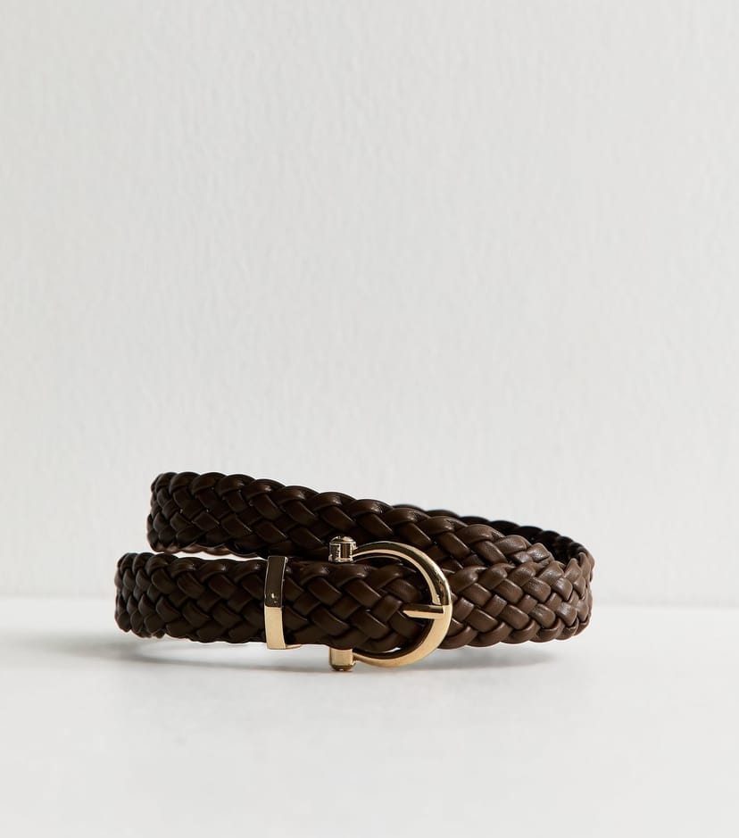 The New Look Dark Brown Faux Leather Braided Belt is made from faux leather.