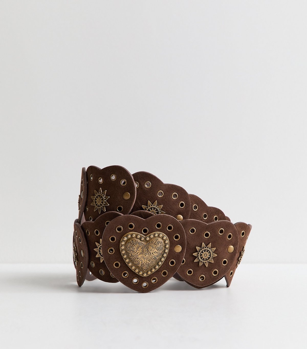 The New Look Dark Brown Faux Leather Heart Disc Belt is ideal for casual, bohemian, everyday.