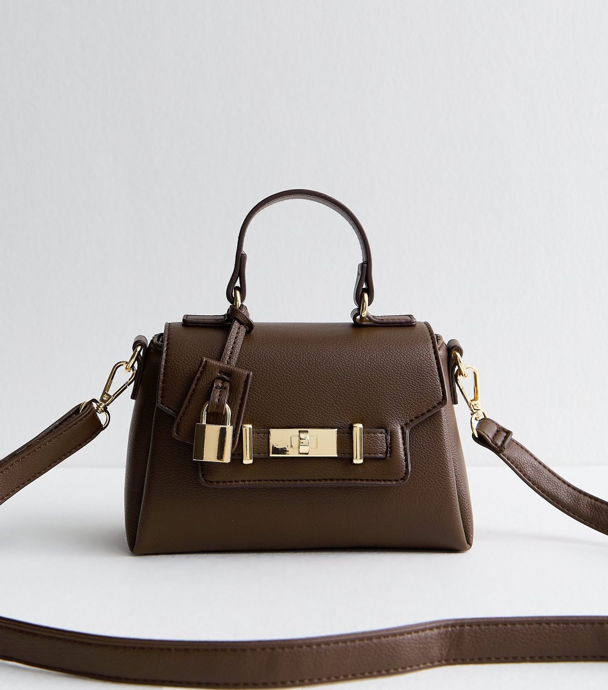 Chic and versatile, this dark brown mini crossbody bag is perfect for any occasion. Featuring a decorative turn-lock clasp and a simple press stud for easy fastening. Ideal for everyday use.