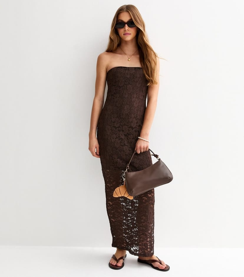 The New Look Brown Lace Bandeau Maxi Dress is ideal for casual, evening, date-night.
