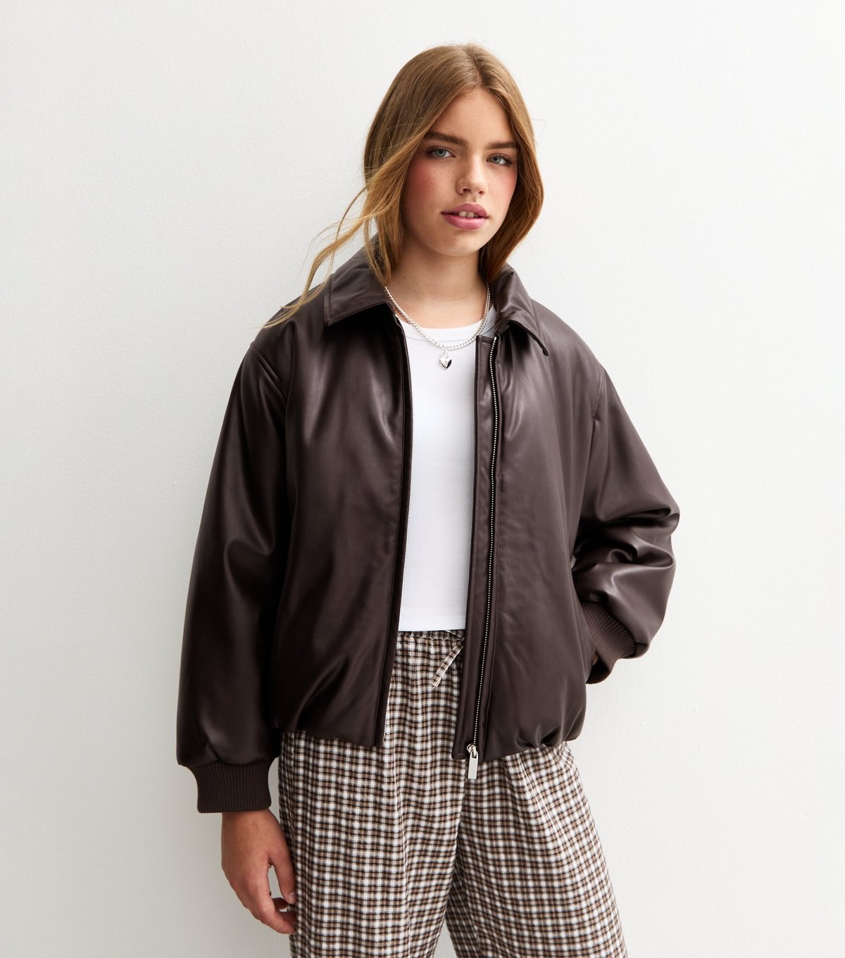 The New Look Dark Brown Faux Leather Jacket is available in sizes 9 YEARS.