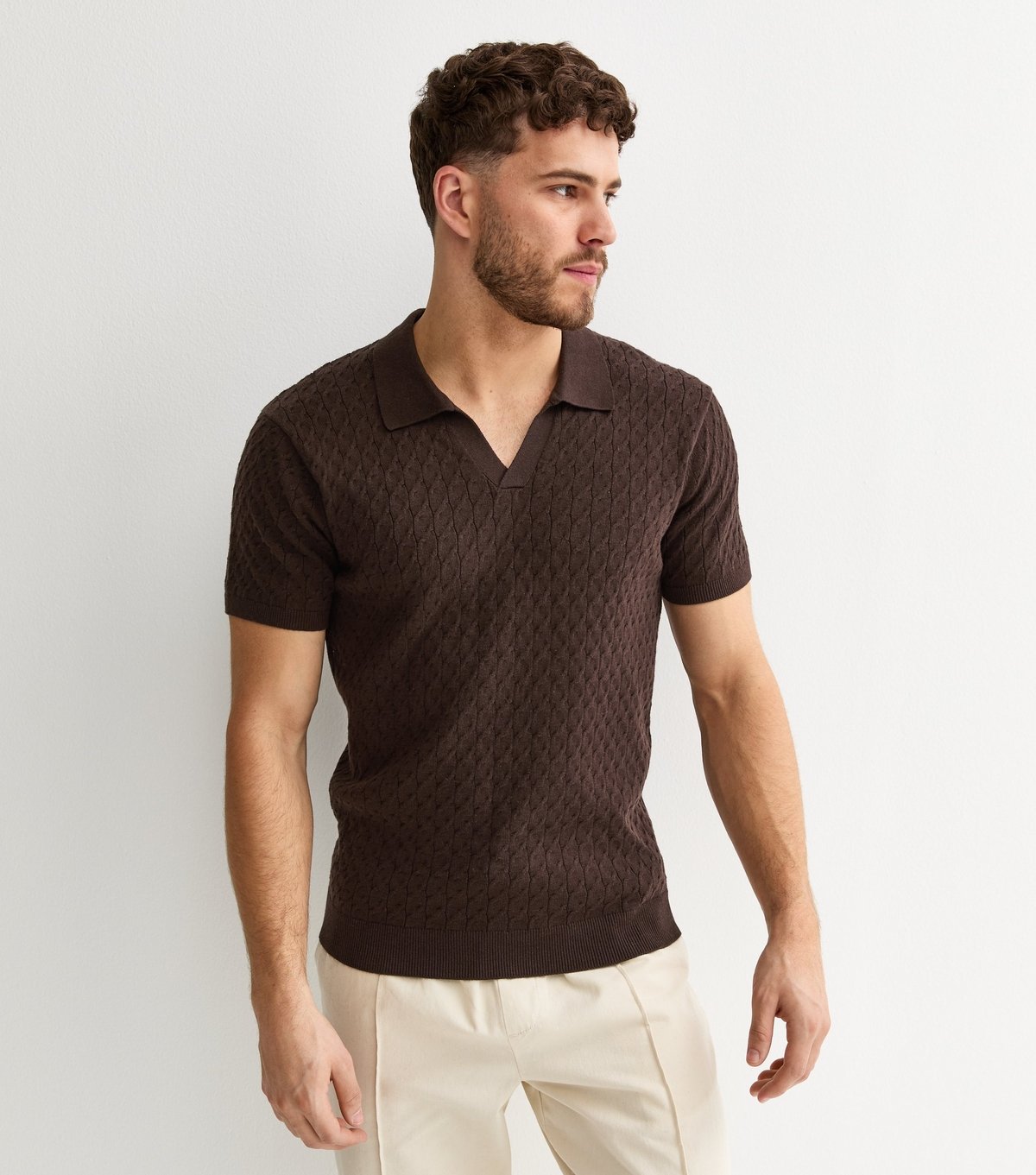 The New Look Dark Brown Cable Knit Polo Shirt is ideal for evening, smart, casual.