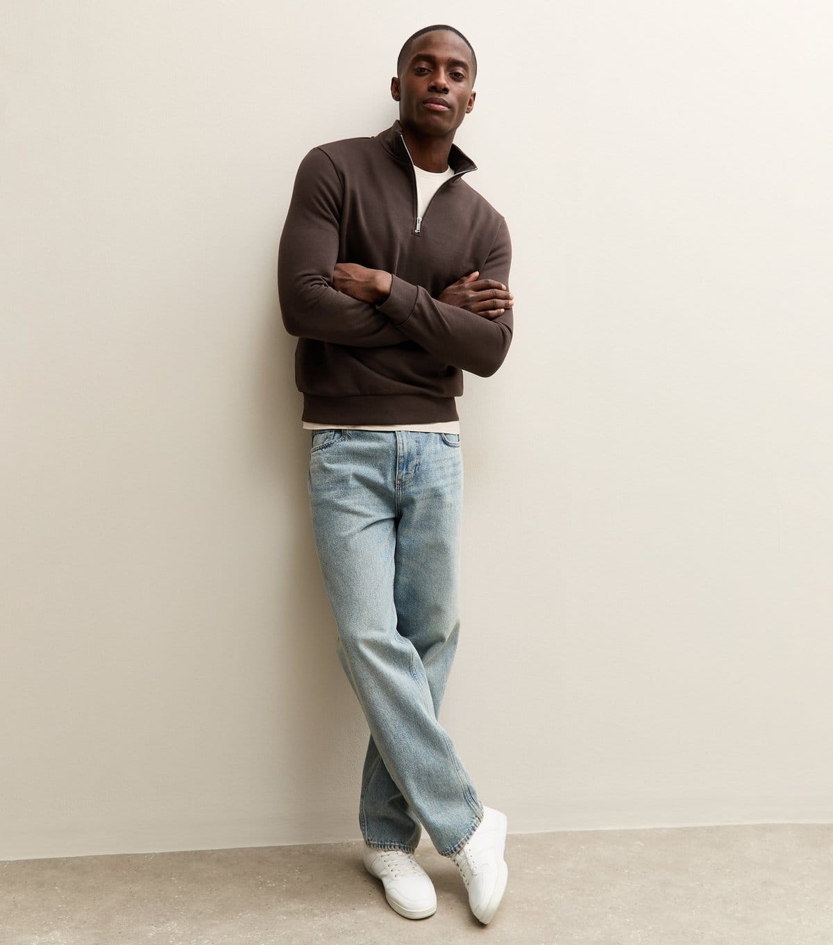 The New Look Dark Brown Jersey Quarter Zip Sweatshirt is made from jersey.