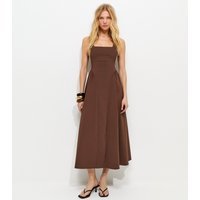 The New Look Brown Woven Square Neck Midi Dress is available in sizes 10, 12, 14, 16, 18, 20, 22, 6, 8.