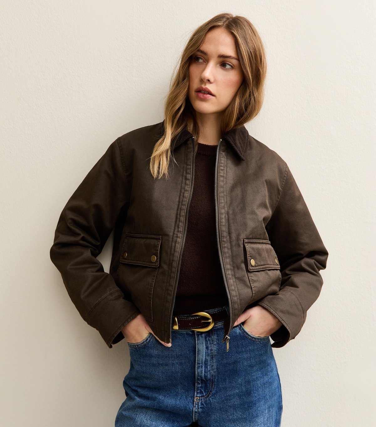 The New Look Brown Waxed Corduroy Collar Barn Jacket is ideal for casual, everyday, outdoor.