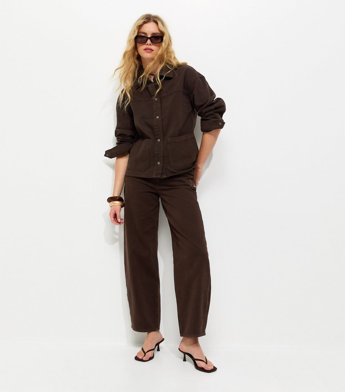 The New Look Dark Brown Barrel Leg Jeans is made from denim.
