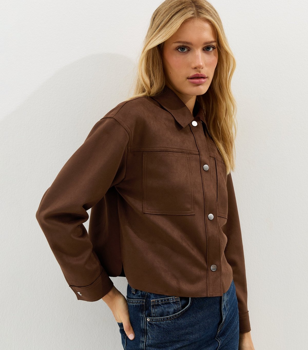The New Look Dark Brown Faux Suede Boxy Shacket is ideal for casual, everyday.
