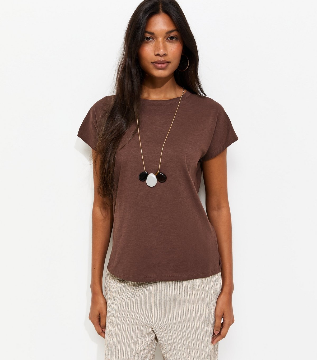 This dark brown t-shirt from New Look is a relaxed staple for your everyday wardrobe. Featuring a crew neckline and grown-on short sleeves, it's perfect for casual wear.