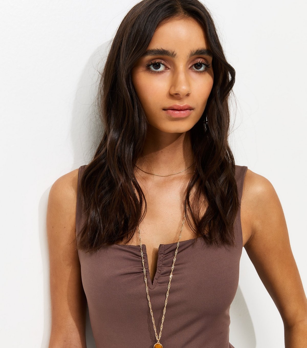 The New Look Dark Brown Jersey Notch Neck Tank Bodysuit is ideal for casual, semi-formal, day out, night out.
