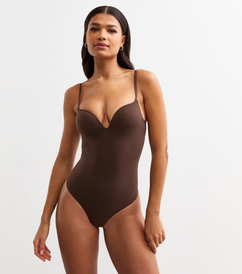 The New Look Dark Brown Seamless Shaping Sweetheart Neck Body is made from spandex, polyester.