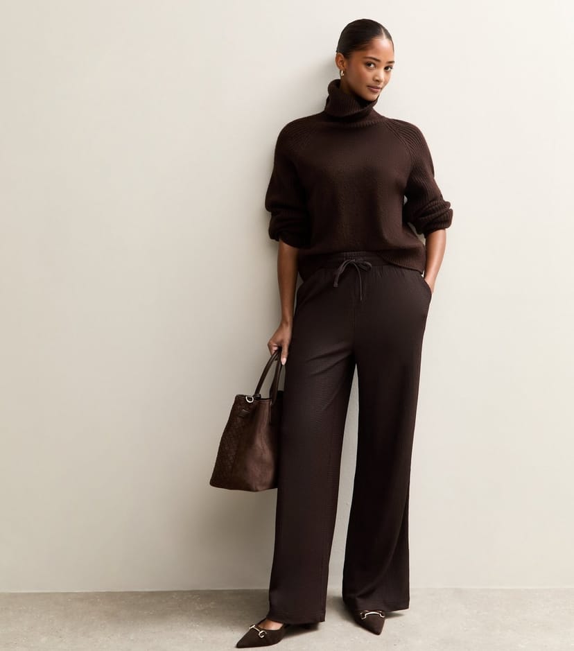 The New Look Dark Brown Textured Wide Leg Trousers is made from jersey.