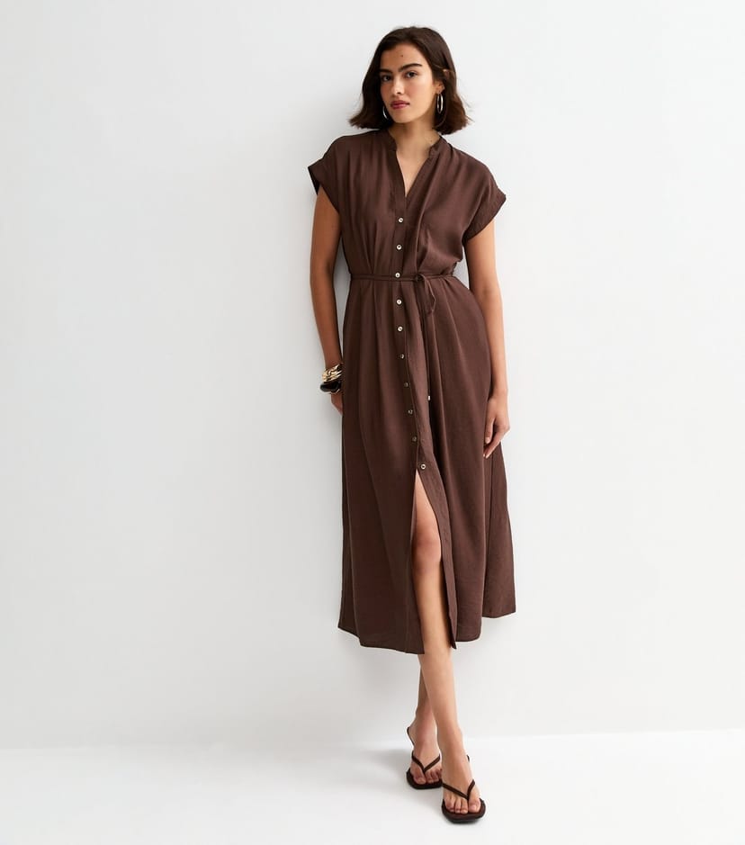 The New Look Dark Brown Toggle Shirt Midi Dress is ideal for daytime, evening, casual.