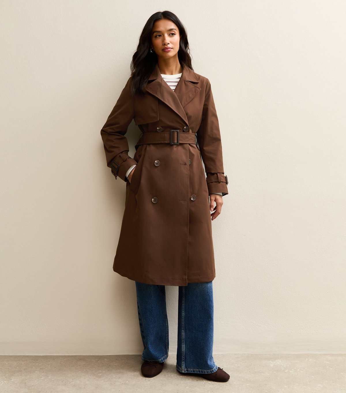The New Look Dark Brown Double Breasted Belted Mac Coat is made from woven.