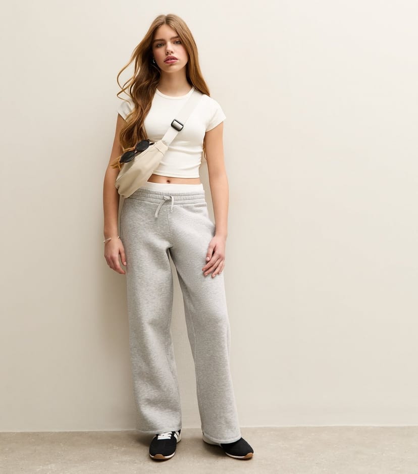 The New Look Dark Grey Contrast Waistband Wide Leg Joggers is available in sizes 10-11 years, 12-13 years.