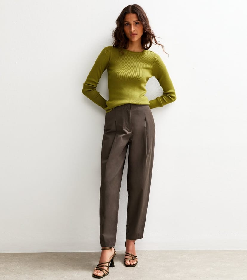 Pair with a green ribbed crew neck jumper and black pointed-toe ankle boots for a polished office look.