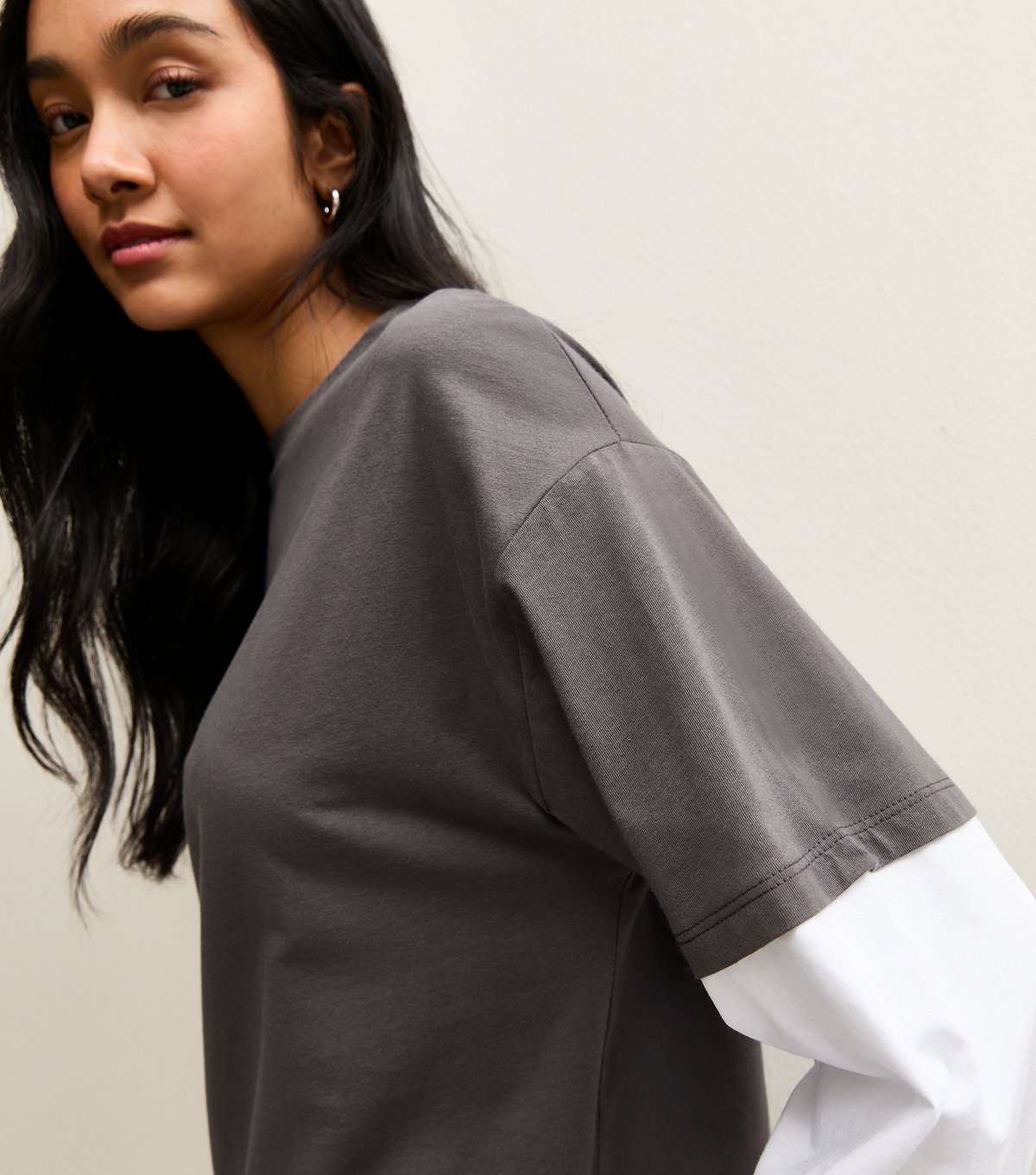 The New Look Dark Grey Boxy Layered Sleeve T-Shirt is made from cotton jersey.
