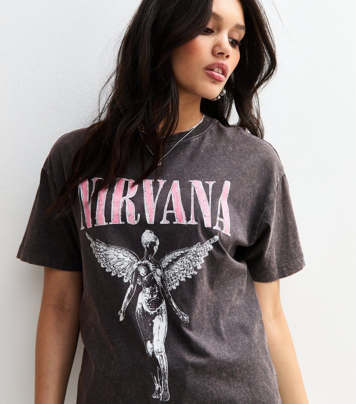 The New Look Dark Grey Nirvana Angel Print T-Shirt is available in sizes 8.