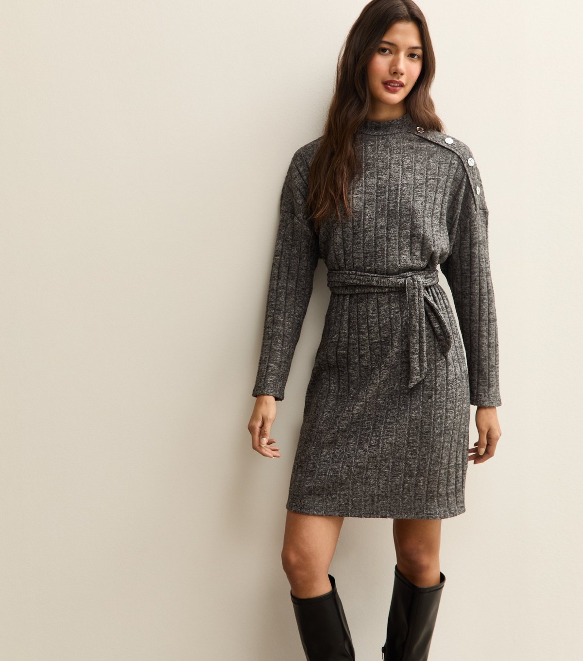 The New Look Dark Grey Rib Buttoned Shoulder Mini Dress is available in sizes 16, 18.