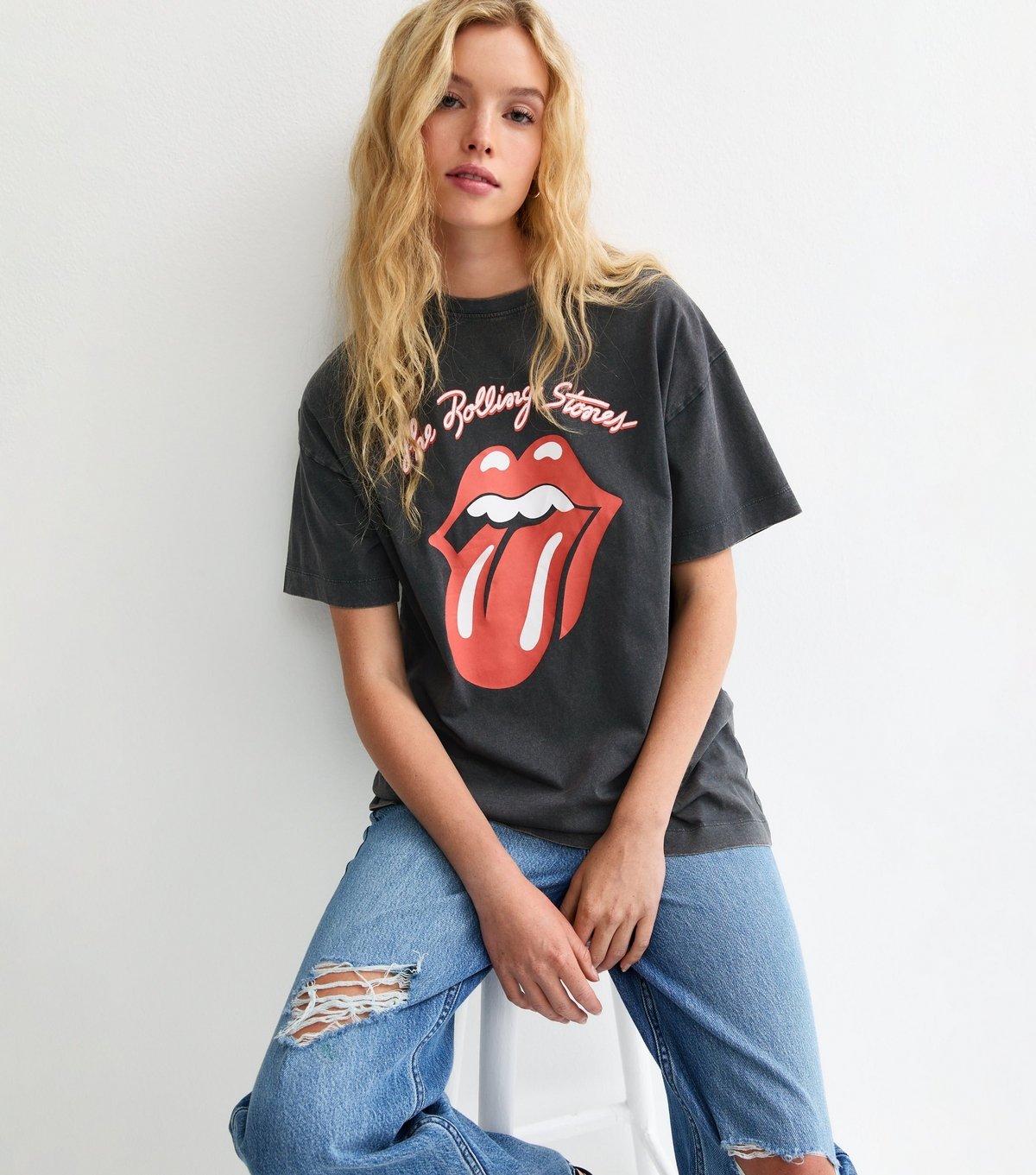The New Look Dark Grey Rolling Stones Lips Print T-Shirt is available in sizes 10, 12, 14, 16, 18, 20, 22, 6, 8.