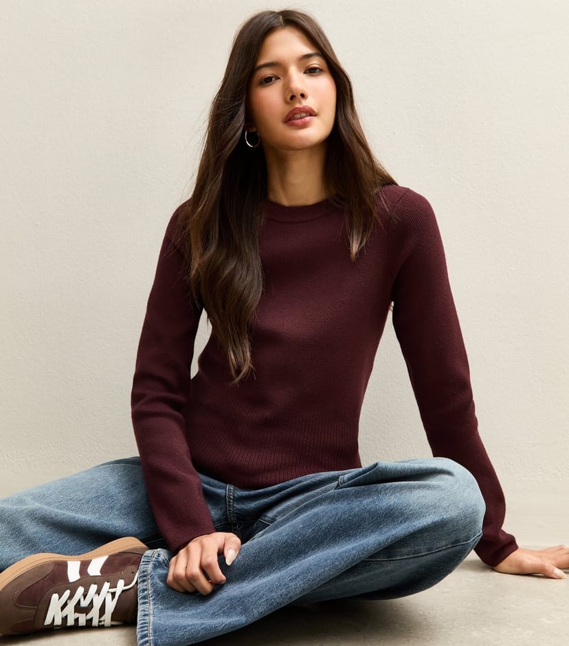 The New Look Dark Purple Ribbed Knit Crew Neck Jumper is available in sizes 10, 16, 18, 20.