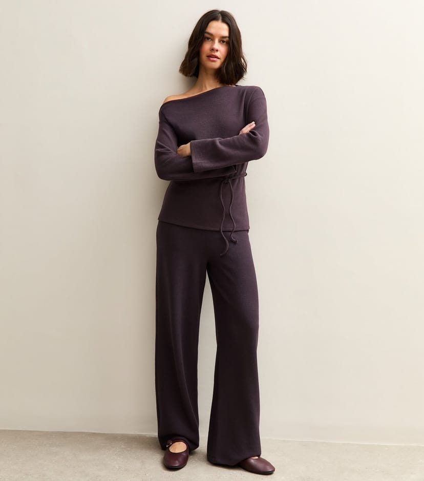 The New Look Dark Purple Soft Touch Wide Leg Trousers is made from polyester, spandex.