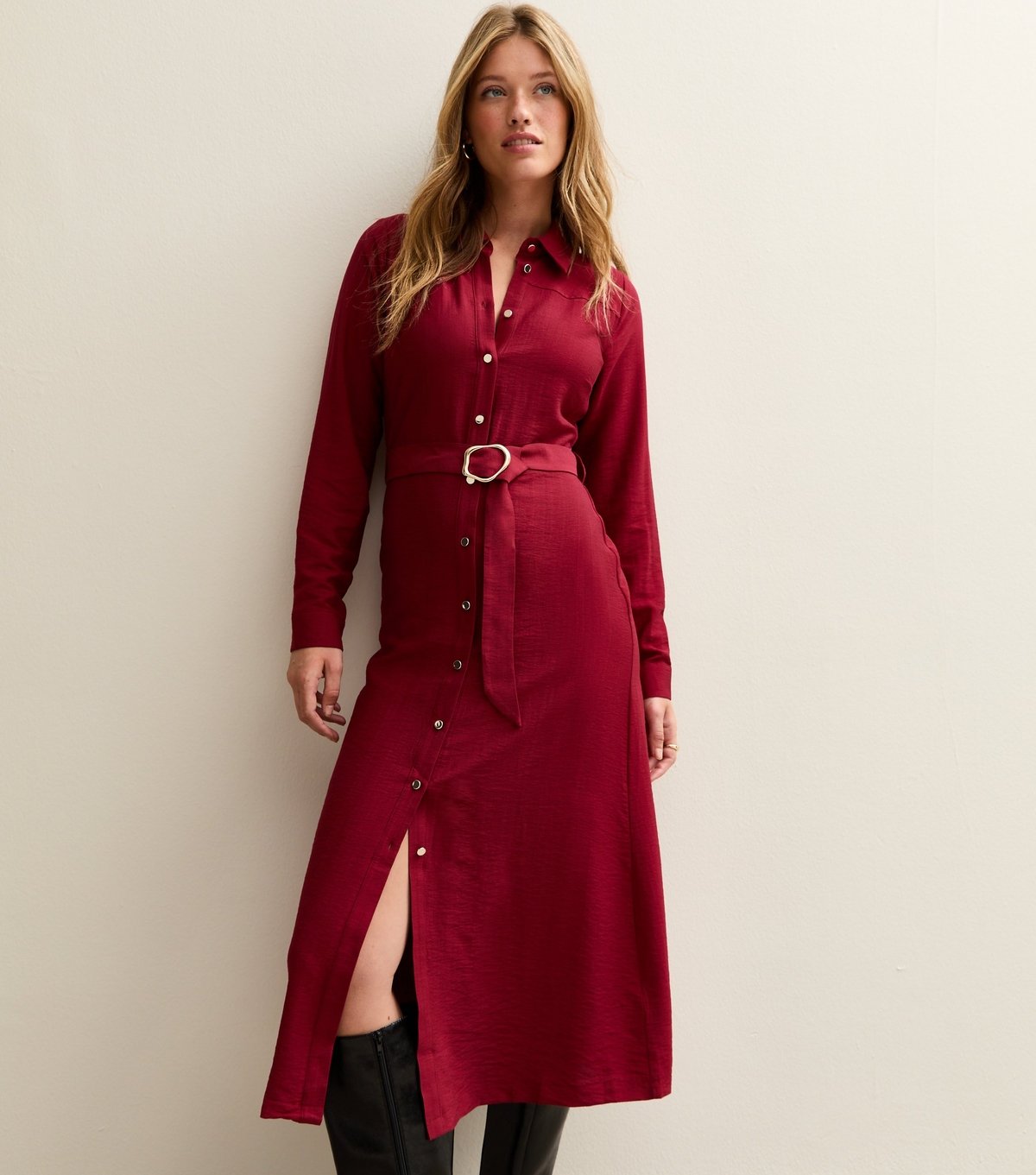 The New Look Dark Purple Belted Midi Shirt Dress is ideal for casual, evening, date-night.
