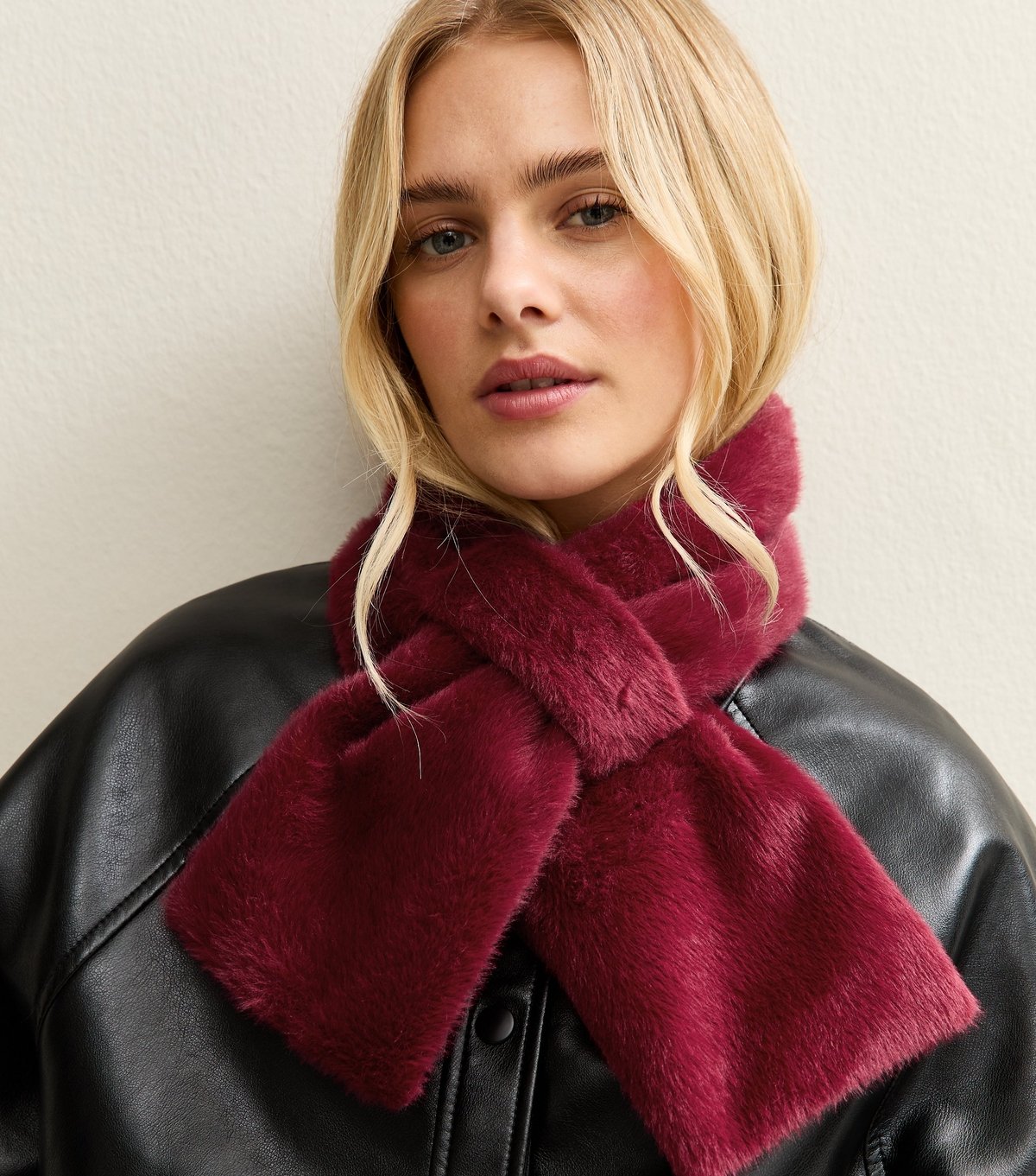 Luxurious dark red faux fur neck scarf from New Look. Adds a playful texture to your winter wardrobe. Perfect for the upcoming seasons.
