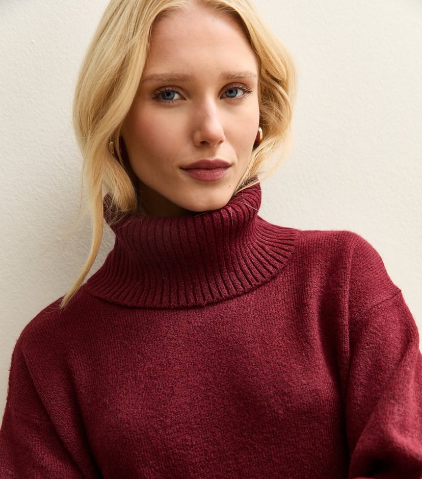 The New Look Dark Red Roll Neck Jumper is made from knit.