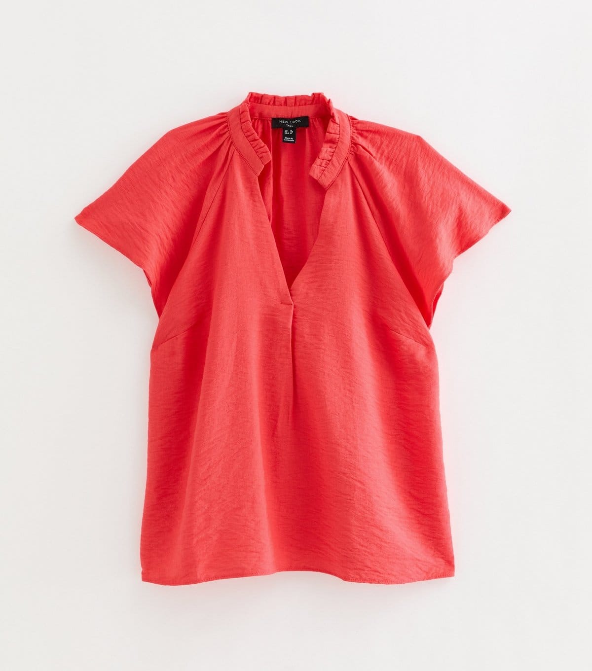 This dark pink blouse by New Look features a flowy shape and flutter sleeves. The open V-neckline is trimmed with a frilly detail, adding a touch of femininity. Perfect for casual or semi-formal occasions.