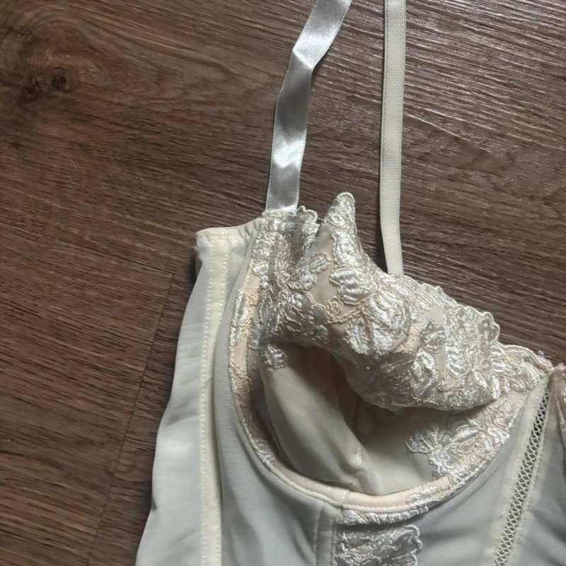 The New Look Mesh Sheer Lace Corset Top in White/Cream is made from mesh, lace, boned.