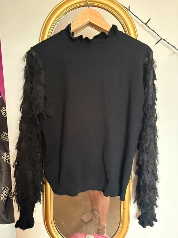 The New Look Black Embellished Long Sleeved Top is available in sizes M.