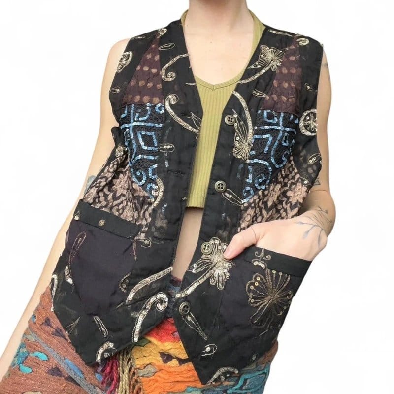 The New Look Vintage Embellished Patchwork Waistcoat is available in sizes XXXL, XXL, XL, XS, L, M, S.