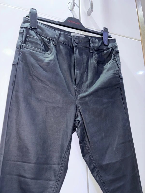 Wet look faux leather skinny jeans from New Look. Ideal for a sleek, modern look, these jeans feature a zip and button up closure. Perfect for a casual day out.