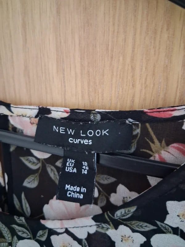 The New Look Black and Cream Floral Chiffon Blouse is available in sizes L.