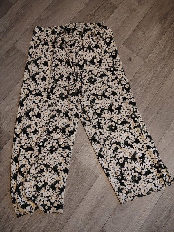 The New Look Black Floral Wide-Leg Pants is available in sizes L.
