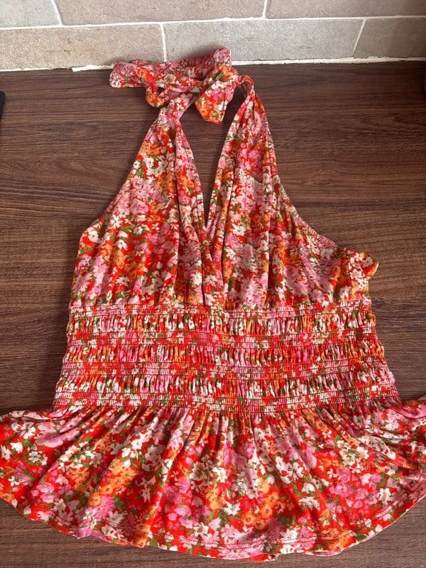 The New Look Multi Floral Tie Halter Neck Top is available in sizes M.