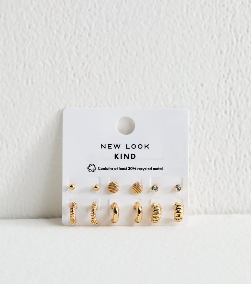 View New Look UK's returns policyElevate your everyday look with this 6-pack of gold tone studs and hoops from New Look. Perfect for creating customisable stacks, these earrings feature a diamanté and twist design. Made with a gold tone finish, they add a touch of sparkle to any outfit.