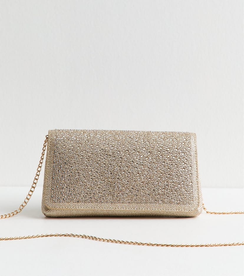 The New Look Gold Diamanté Embellished Chain Shoulder Bag is available in sizes one size.