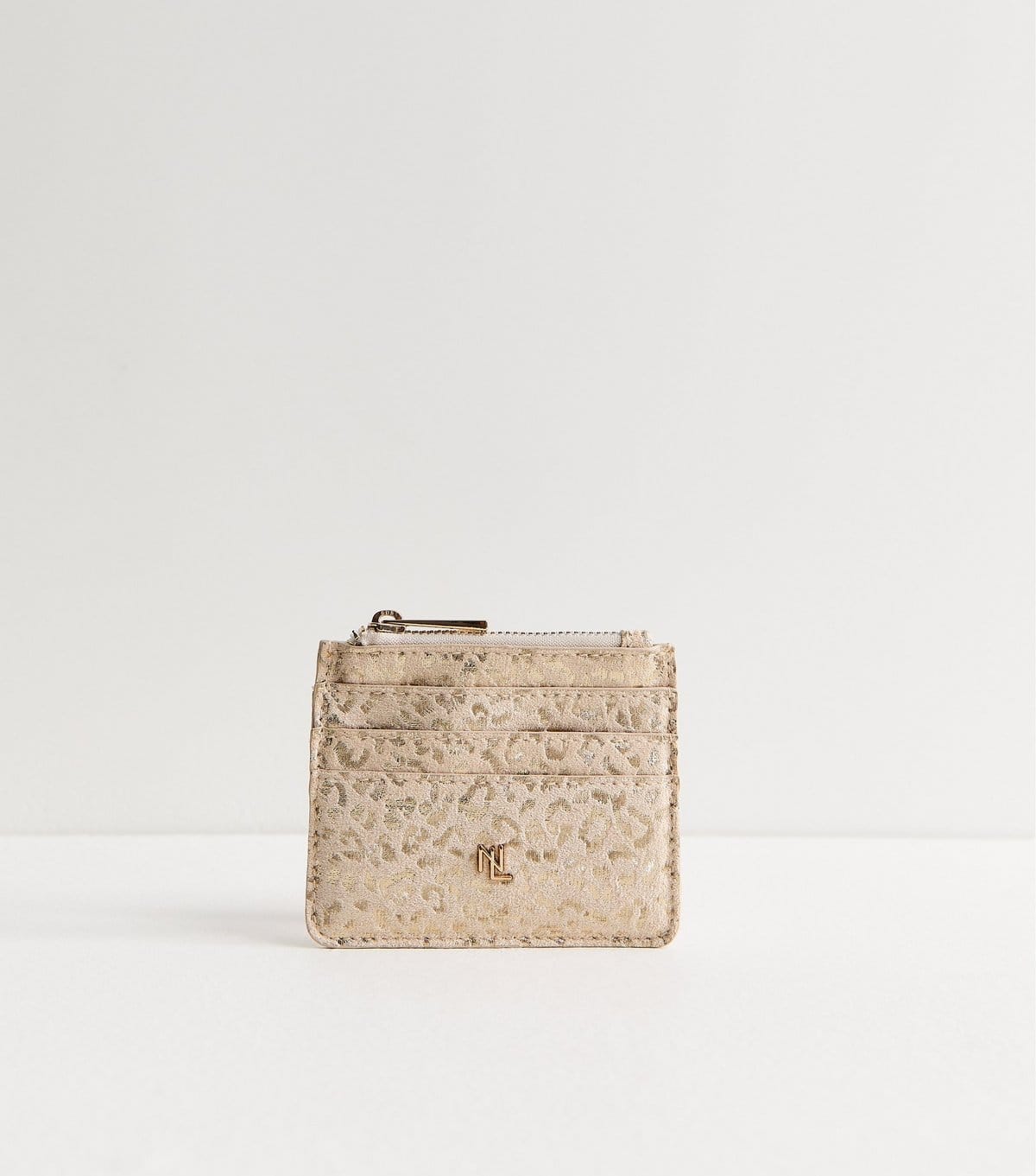Stylish gold metallic leopard cardholder from New Look. Features a textured metallic finish and three card slots with a zipped compartment for coins. Ideal for everyday use.