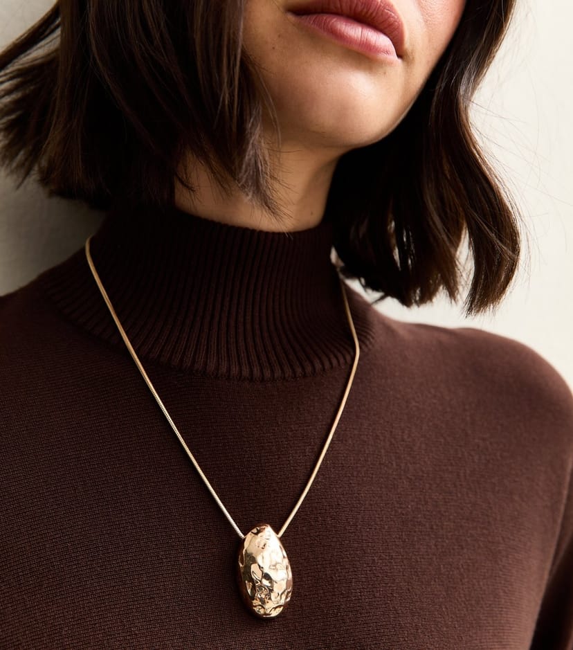 The New Look Gold Tone Beaten Dome Long Necklace is made from gold tone metal.