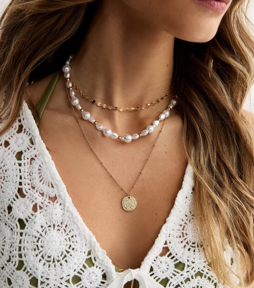 The New Look Gold Tone Faux Pearl Layered Necklace is ideal for casual, evening, special occasion.