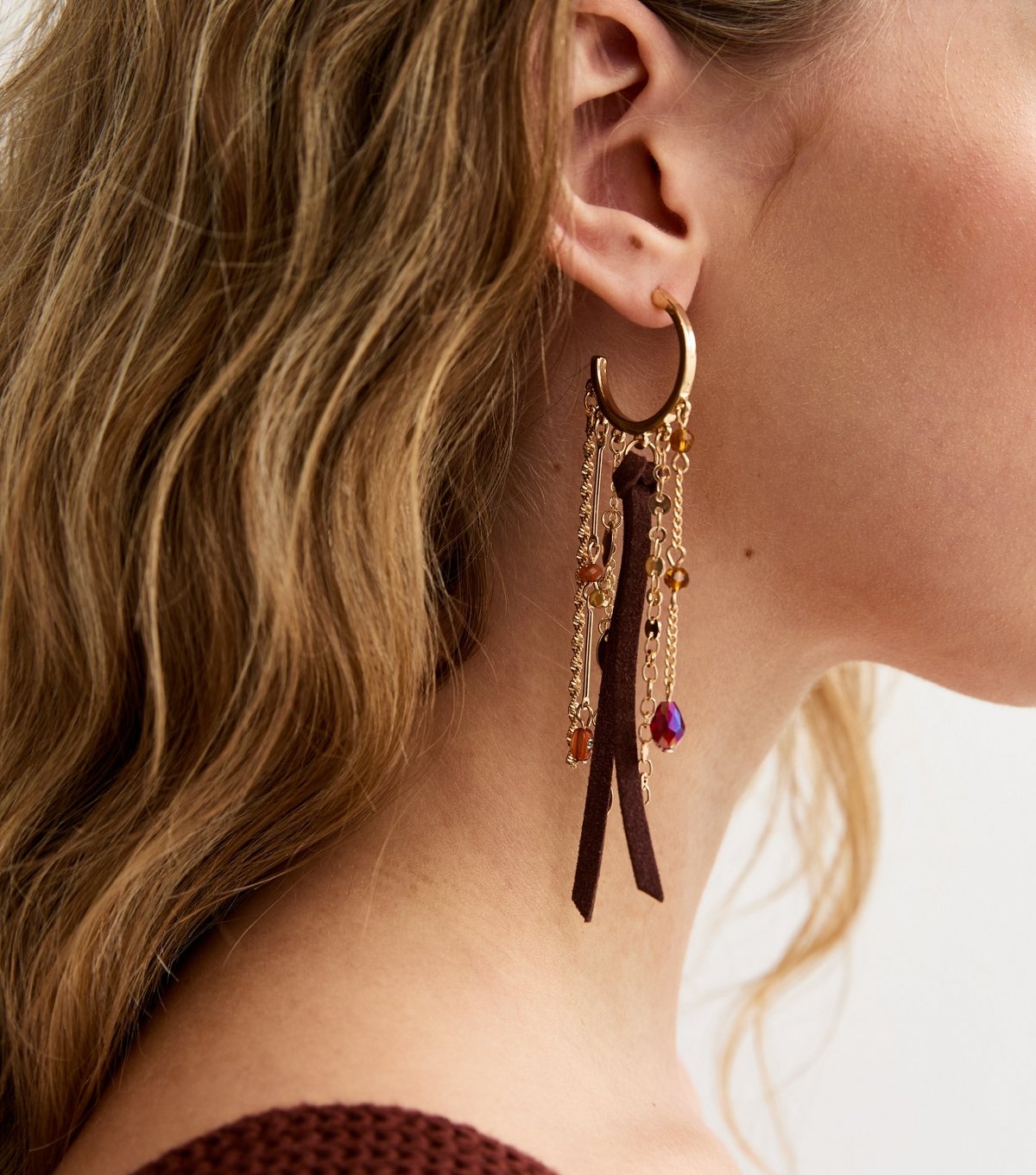 The New Look Gold Tone Boho Hoop Tassel Drop Earrings is made from faux suede, metal.