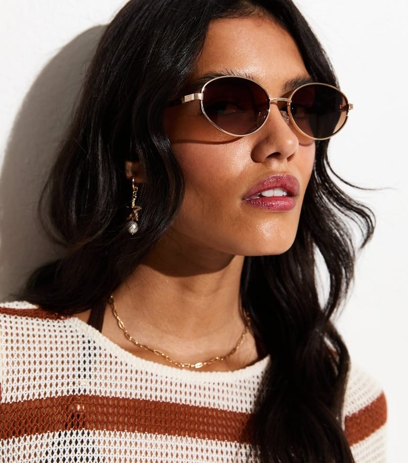 The New Look Gold Tone Brown Oval Frame Sunglasses is ideal for casual, everyday, outdoor.