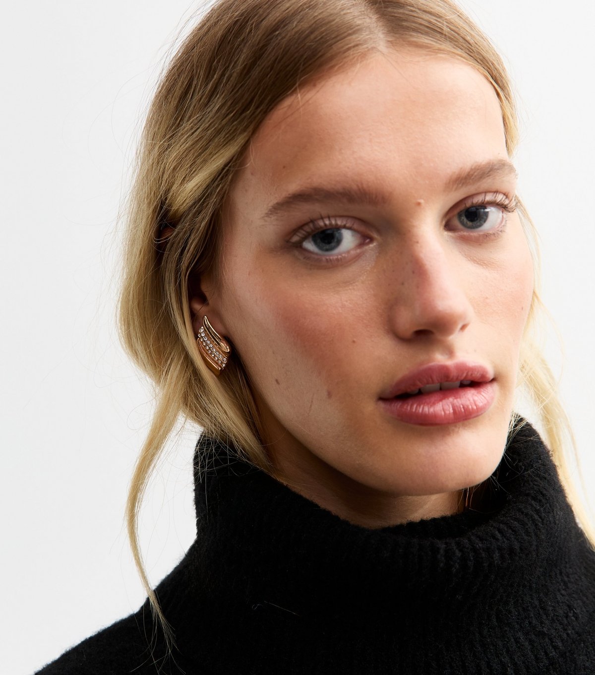 The New Look Gold Tone Diamanté Curved Stud Earrings is available in sizes ONE SIZE.