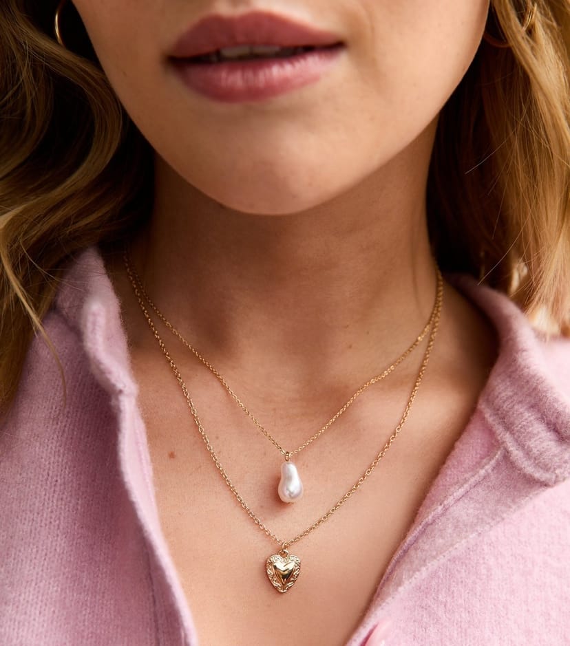 The New Look Gold Tone Heart and Faux Pearl Necklace is ideal for casual, everyday, date-night.