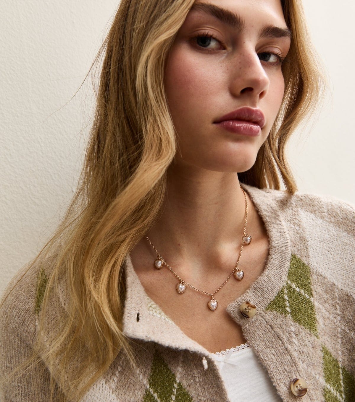 The New Look Gold Tone Mini Puff Heart Charm Necklace is made from faux pearl, metal.