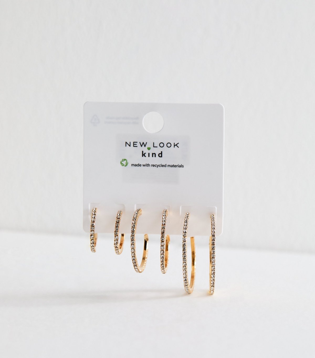 The New Look Gold Tone Diamantè Hoop Earrings Pack of 3 is available in sizes ONE SIZE.