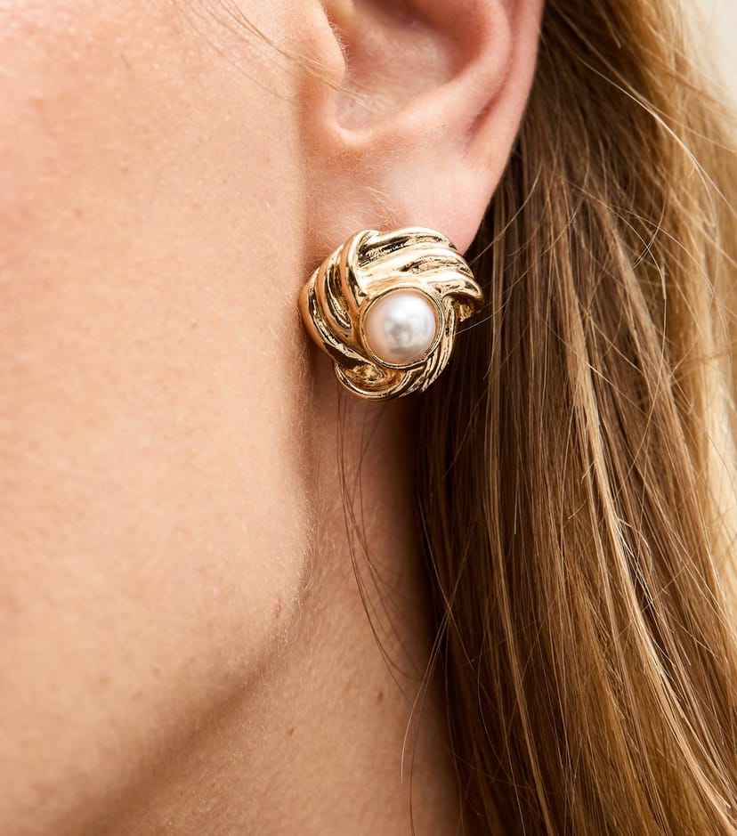The New Look Gold Tone Ribbed Faux Pearl Knot Earrings is ideal for evening, party, date-night.
